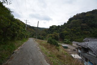 折り返しの道路。ちょっと角度があるので慣れるまでは我慢して。※写真右上も道があり、家があった形跡はありますが現在は建物もありません。ここで行き止まり