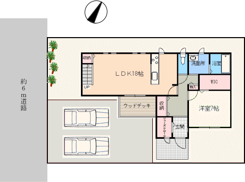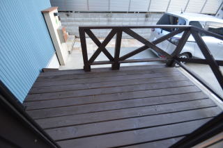 リビング前にはウッドデッキあり。アウトドアリビングとして使えますね。