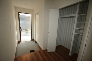 逆方向から。収納が近くにあり、ベビーカーやコートなどの荷物も収納可能で、便利です。