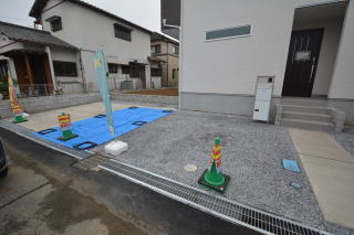 玄関周辺には砂利が敷かれ、入口から玄関までは舗装されています。