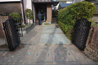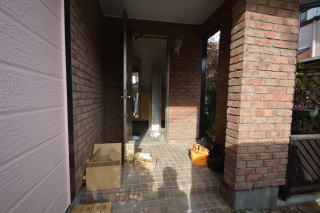 玄関。レンガ調の壁がお洒落ですね。