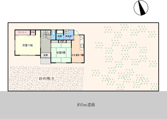 敷地東側は更地になっていて、菜園スペースも造れそう。