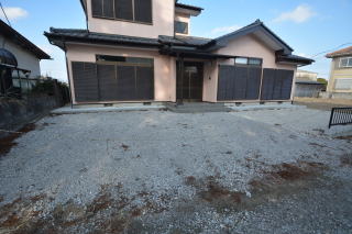 建物前は広く砂利が敷かれ、駐車スペースにぴったりです。