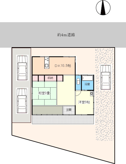 西側・駐車スペース 間口も広めで、出入りがしやすい。