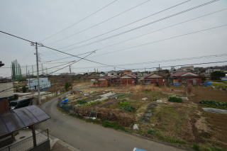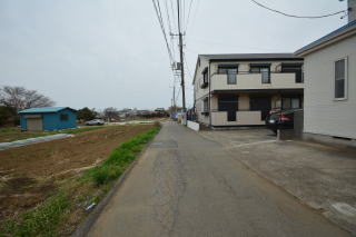 閑静な住宅地で、道路の反対側には畑も残っています。