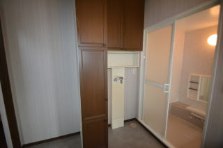 洗面所には備え付けの収納もあり、バスタオルなども置けて便利です。