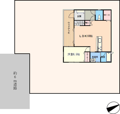 リビング前にはウッドデッキがあり、アウトドアリビングとして使えそう。