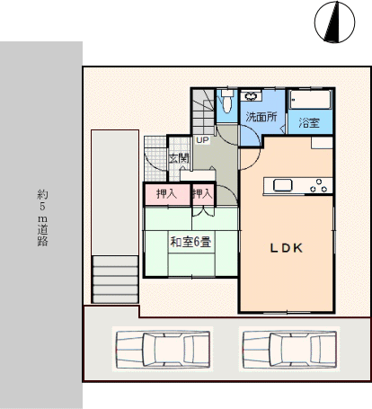 西・約5m道路。イオンタウンユーカリが丘やマツモトキヨシまで