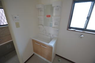 洗面所はとても広く、収納棚なども置けそうです。