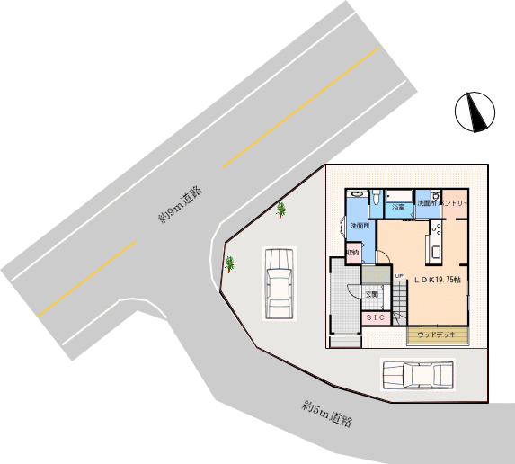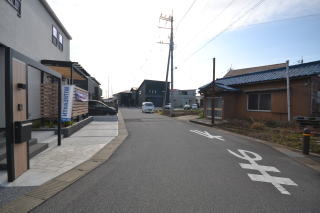 北側・約9m道路。歩道付きの、広めの道路です。