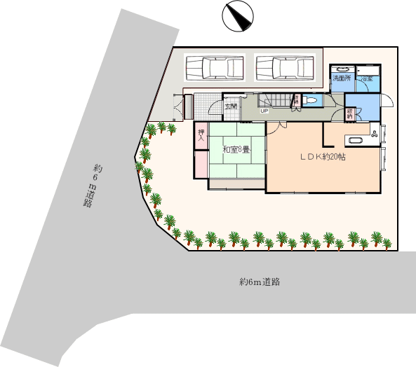 北西側・約6m道路。