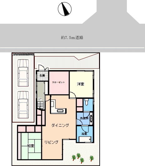 北東・約7.5m道路。大和田南小学校まで徒歩約4分、八千代中学校まで徒歩約7分。