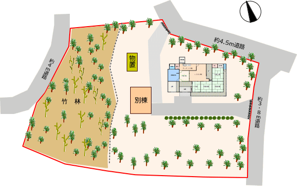 敷地西側は竹藪。