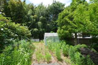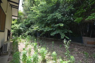東側・入口付近から見る。 お庭は広く、お手入れのし甲斐がありそうです。