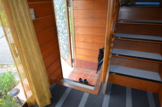 母屋から内部を見て行きましょう。玄関はガラスの引き戸で、内部にも良く光が入ります。