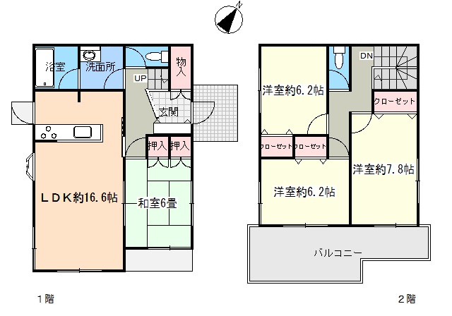 和室6畳。小倉小学校まで約170m、若松中学校まで約1km。