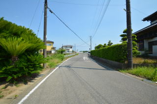 敷地外・南東側から。スーパーランドロームまで約1.8kmで、生活は便利です。