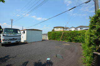 入口付近は広く舗装されたスペースが。別棟と物置がここにあります。