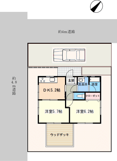 北西・約4m道路。スーパートウズまで約3.9kmで、生活は便利です。