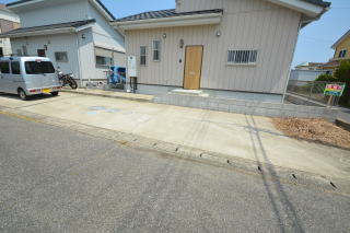 駐車スペースは車1台分。間口が広く停めやすいです。間口約9mなので軽なら2台停められそう。