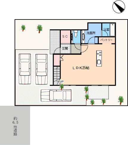 駐車スペースは、計車3台分。車は必需品になりそうなので、広いスペースは嬉しいですね。