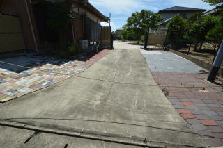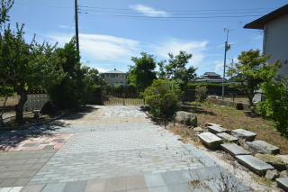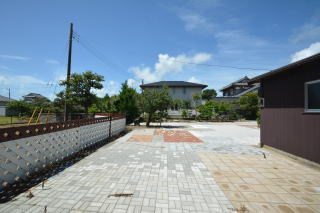 南側から見ると、お庭はコンクリートブロックを組み合わせて敷き詰めるインターロッキング敷きでとても綺麗です!