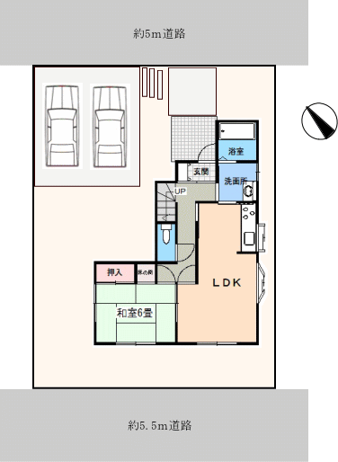 駐車スペースは車2台分。間口が広く、並列で停められて便利です。