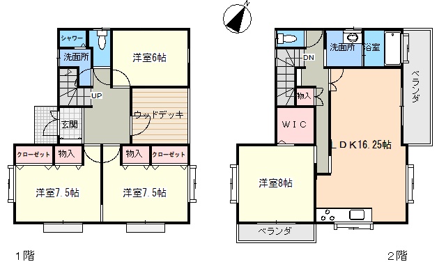 北東側にはウッドデッキがあり、お部屋の一部として使えそうです。