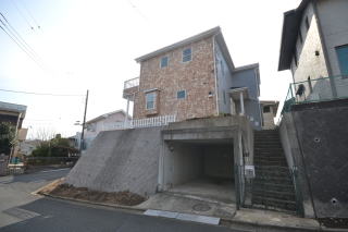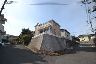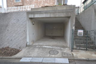 西側から。物件は道路より一段高くなっており、階段を上がり敷地内へと進みます。