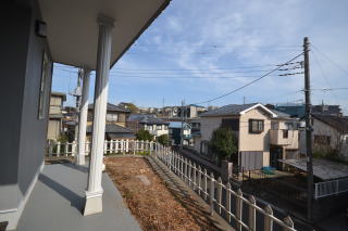 北東側お庭。物件は角地に建ち、さらに周辺より高いので眺望は良好で、開放感も確保されています。