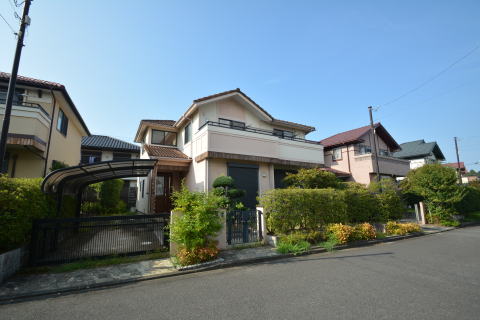 お庭は綺麗に整えられ、前面が道路なので開放感もあります。