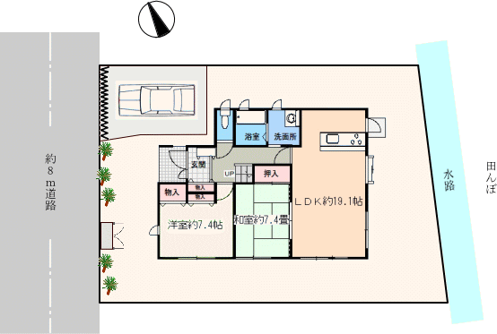 南西向きで建ち、日当たり良好。お部屋も全て南西側に面しています。