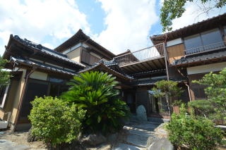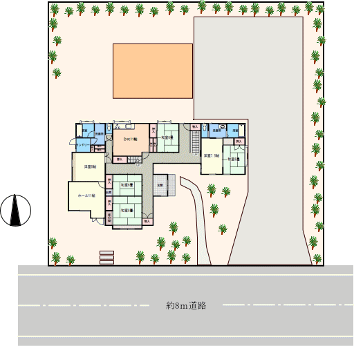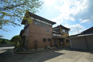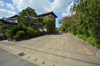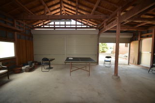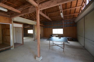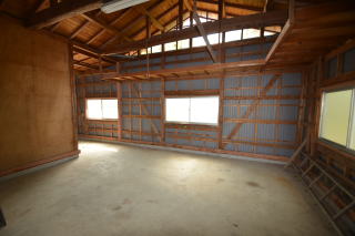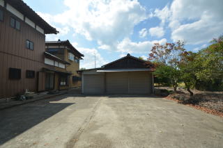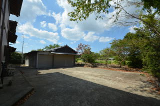 敷地北側には大きな倉庫兼車庫があり、広く舗装されています。
