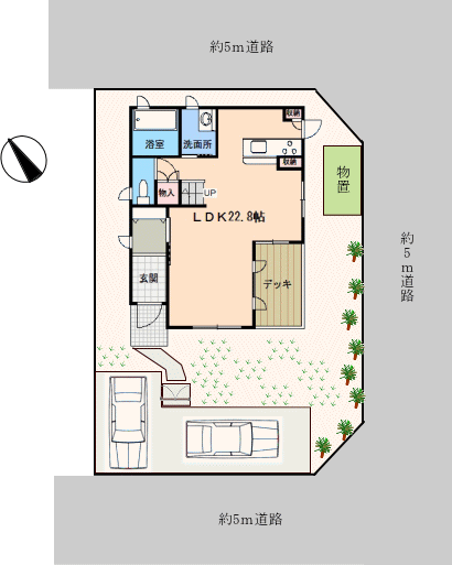 南東・約5m道路。ローソンまで徒歩約5分