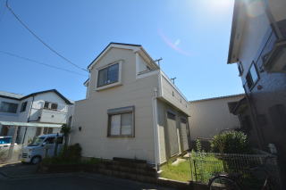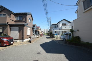 西側から見る。隣家とも適度に離れ開放感も確保!
