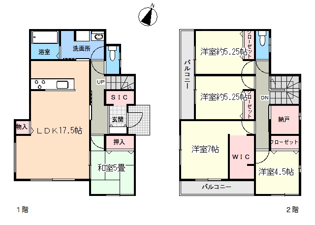 バルコニー 洋室約5.25帖の2部屋にはバルコニーが付いています。