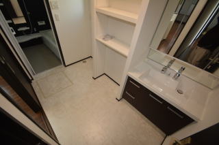 洗面所。廊下やキッチンと繋がっていて、活動しやすい設計になっています。