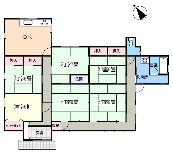 平家建ての大型6DKで、生活も楽に出来そうです。手直しは必要ですが。。