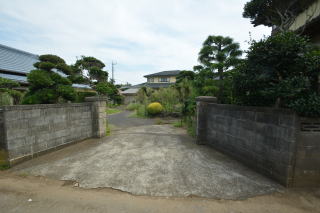 入口付近から見る お庭の一部はコンクリート舗装で駐車スペースなりますね。