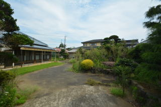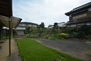 建物を背に南西側を見る お庭は大変広く、草刈りしてからお庭造りが楽しめそうです。