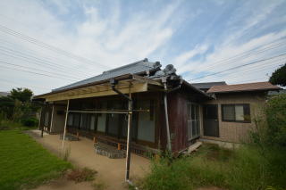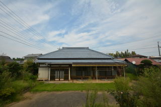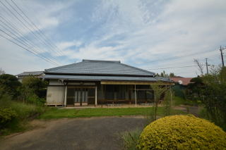 南側から。母屋の前にはテラスがあり、ここで洗濯物が干せそう。
