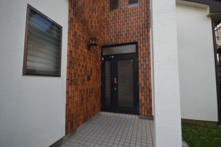 レンガ調の壁に囲まれた、お洒落な玄関です。