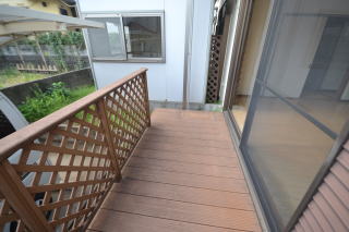 リビング前にはウッドデッキがあり、リビングの一部として使えそうです。
