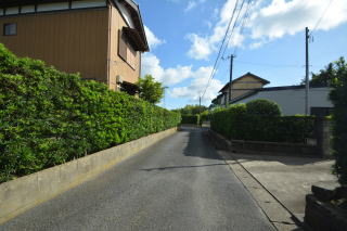 前面道路 一番奥に物件。手前は農家集落が密集している地域です。