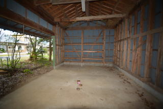 納屋内部はとても広く、屋根付き駐車場としても良さそうです。