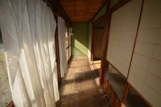 増築部分と思われる廊下。天井は透明なポリカなので陽が入って明るい!