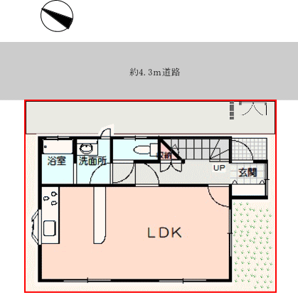 北東側から。道路側は窓が少なめで、人通りは気になりませんね。