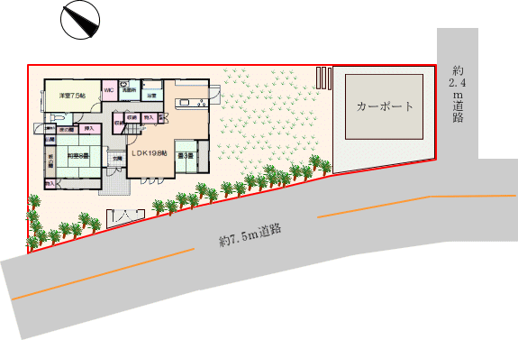 南西側・約7.5m道路。駅近で、通勤通学も便利。周辺には生活施設が充実し、生活も大変便利です。