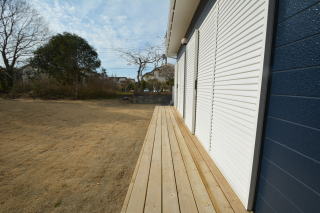 西側洋室の前にも、広めのデッキがありました。お部屋から直接出られ、お部屋の一部として使えそうです。