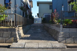 幅約2mの物件進入路は、舗装済みで足元も安心です。
